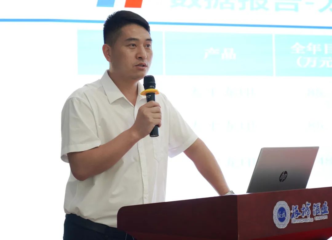 板城酒業(yè)營銷管理部經(jīng)理楊輝匯報上半年度的相關(guān)工作,對戰(zhàn)略目標(biāo)落地的關(guān)鍵指標(biāo)、深度分銷模式落地的數(shù)量與質(zhì)量等工作開展進(jìn)行有效追蹤、檢核與分析。