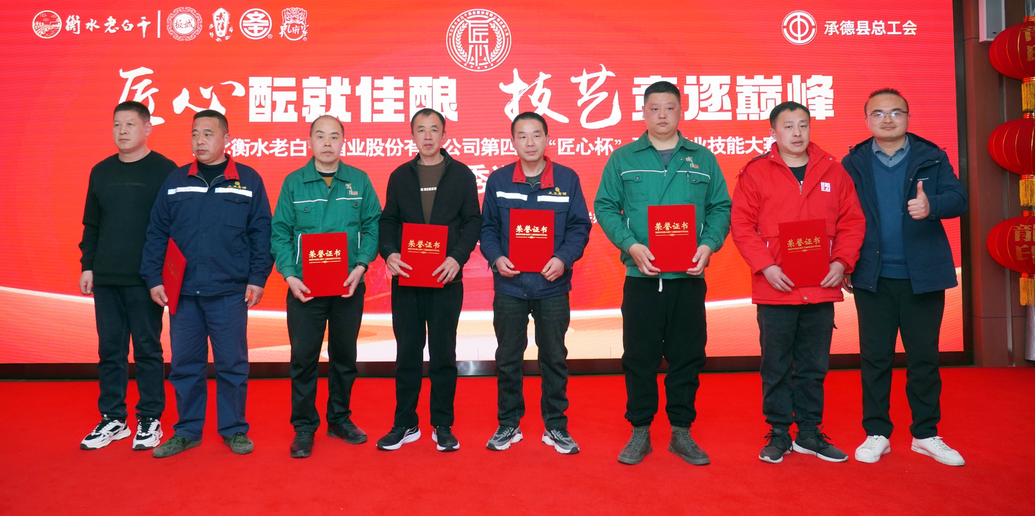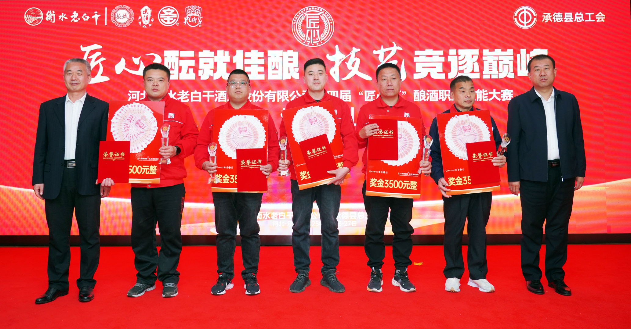 在活動閉幕式上,承德縣總工會黨組書記、常務副主席溫明忠,衡水老白干酒業(yè)公司副董事長張煜行,板城酒業(yè)黨委書記、總經理張春生,衡水老白干酒業(yè)公司工會副主席孔衛(wèi)東,板城酒業(yè)生產總經理趙志剛,文王酒業(yè)生產總經理孫偉,孔府家酒業(yè)生產總經理顏世昕,武陵酒業(yè)技術總監(jiān)張福艷,衡水老白干酒業(yè)公司技術中心副主任王新磊,以及各公司的參賽選手、裁判、領隊及相關部門負責人出席活動。