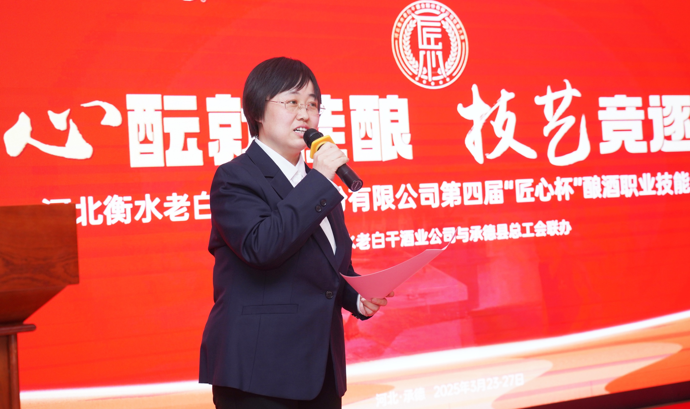 衡水老白干酒業(yè)公司工會副主席孔衛(wèi)東宣讀本次大賽獲獎名單,宣布對獲獎選手進行表彰,大賽中36名優(yōu)秀選手經過激烈角逐,最終產生“釀酒狀元”1名,“杰出工匠”5名,“技術能手”12名,“優(yōu)秀選手”18名;本次新增設“匠心傳承獎”1名。